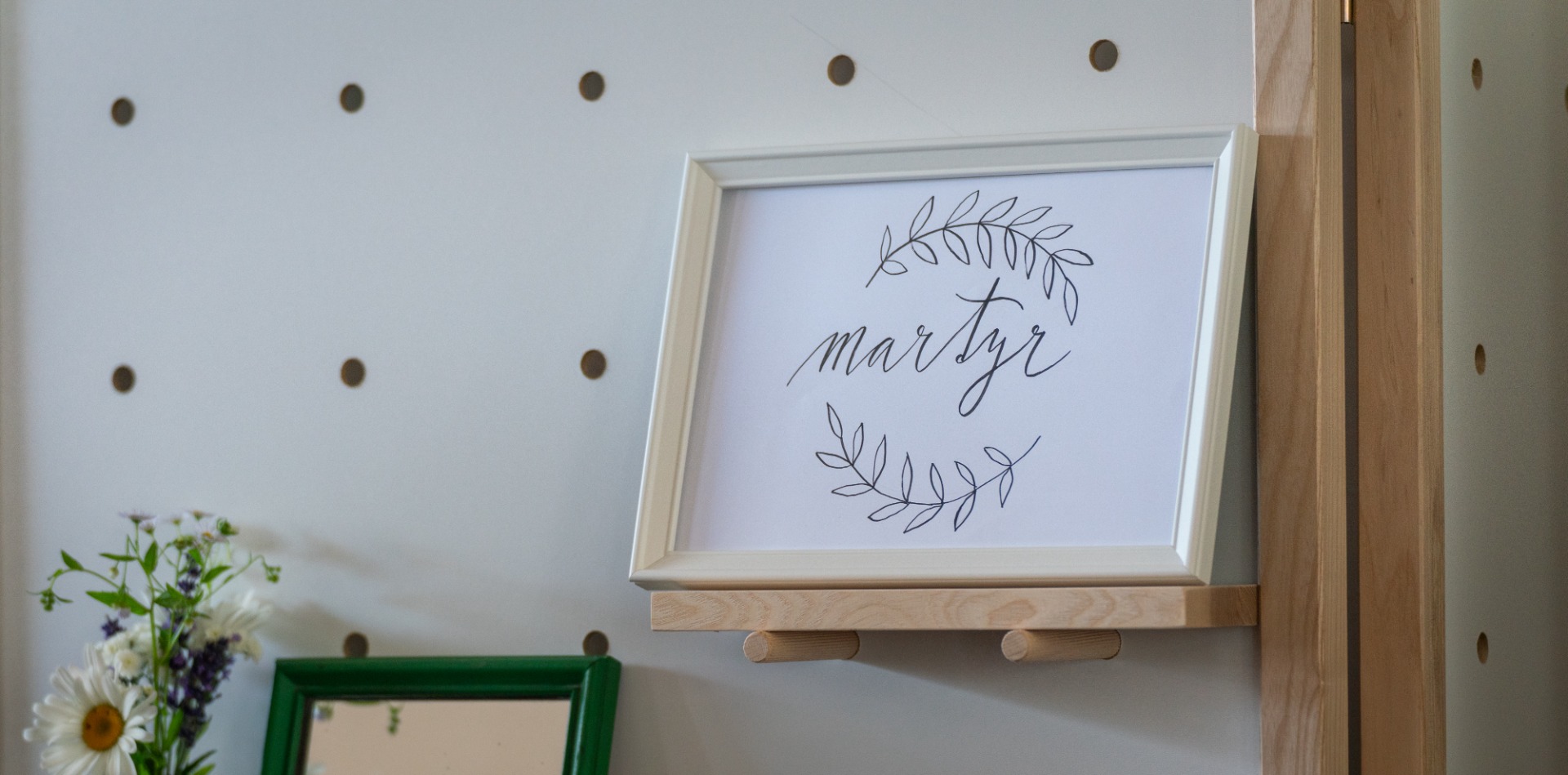 Možná Vás napadla otázka, proč se moje značka jmenuje Martyr. Ne, neodkazuji se na žádnou deathmetalovou kapelu. Martyr pochází z řeckého slova mártys a znamená svědek. Toto slovo se ujalo jako pojmenování člověka, který pro svědectví své víry obětoval vše, třeba i svůj život, proto se nám v dnešní době spojuje toto slovo s mučednictvím.