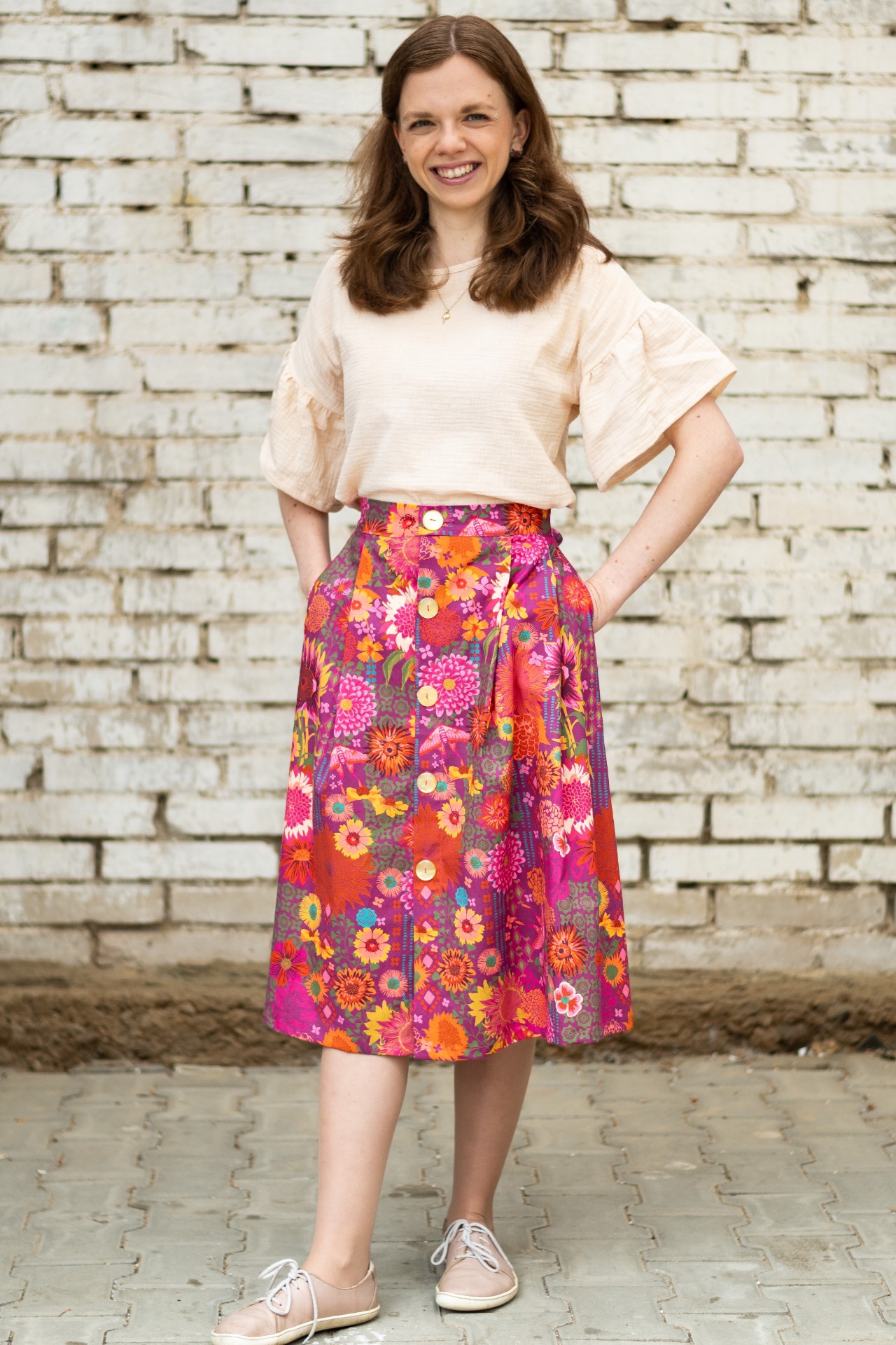 Bavlněná, pestrobarevná, nepřehlédnutelná, pohodlná a s kapsami, přesně taková je tato sukně!